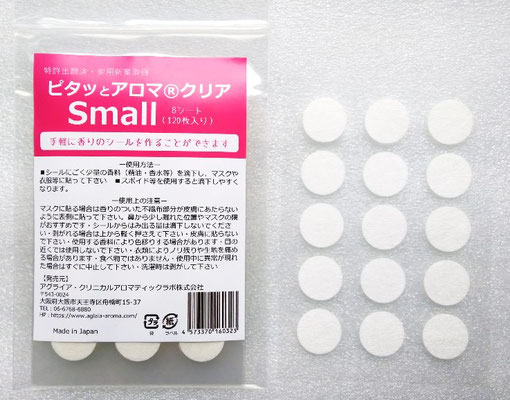 小さいサイズが新発売。マスクに貼って快適なマスク生活を送ることが出来ます。好きな香りを滴下して、自分で目的のアロマシールをつくることができます。1シートあたり15枚の○型シールがついています(直径15mm)